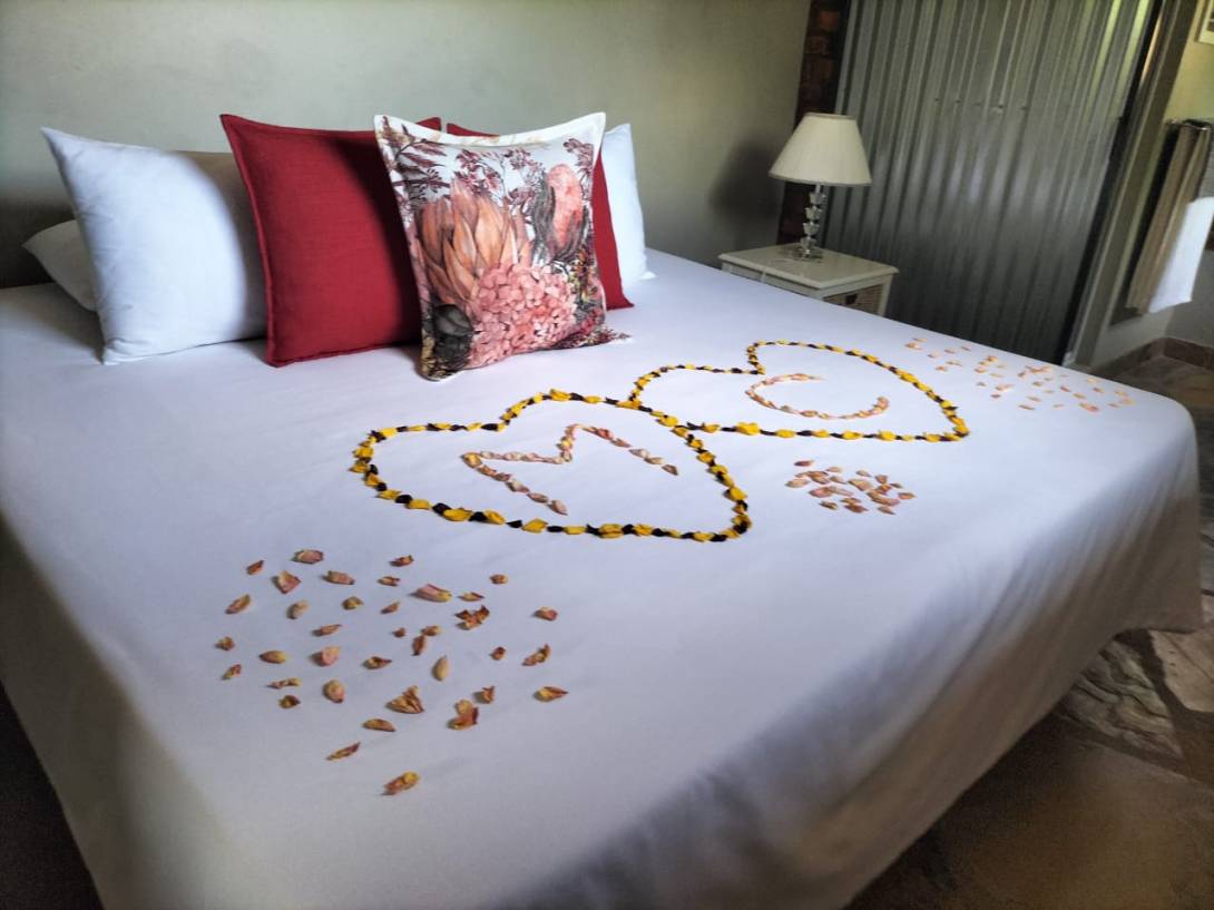 Access to the venue is via sand roads off the N4 highway and high clearance vehicles are recommended. Secure parking is available on the property. Guests can enjoy on-site activities such as swimming, walking/hiking, mountain biking on the bushveld farm and surrounding farm roads, guided walks, tree scouting, bird watching, and stargazing. Nearby activities and attractions include prearranged fishing and game viewing.